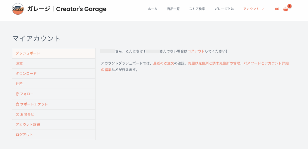 ④ 設定が終わってログインすると、マイアカウントが開きます。