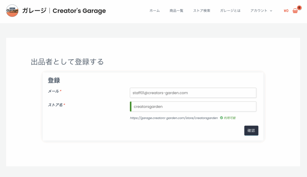 ガーデンへの登録とクリエイター情報入力をお願いいたします。